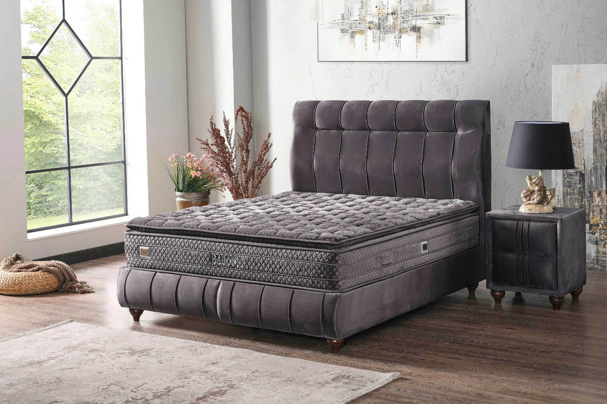 • Straturi de confort – fibră siliconată, spumă elastică și paslă din lână pentru amortizare și relaxare sporită.